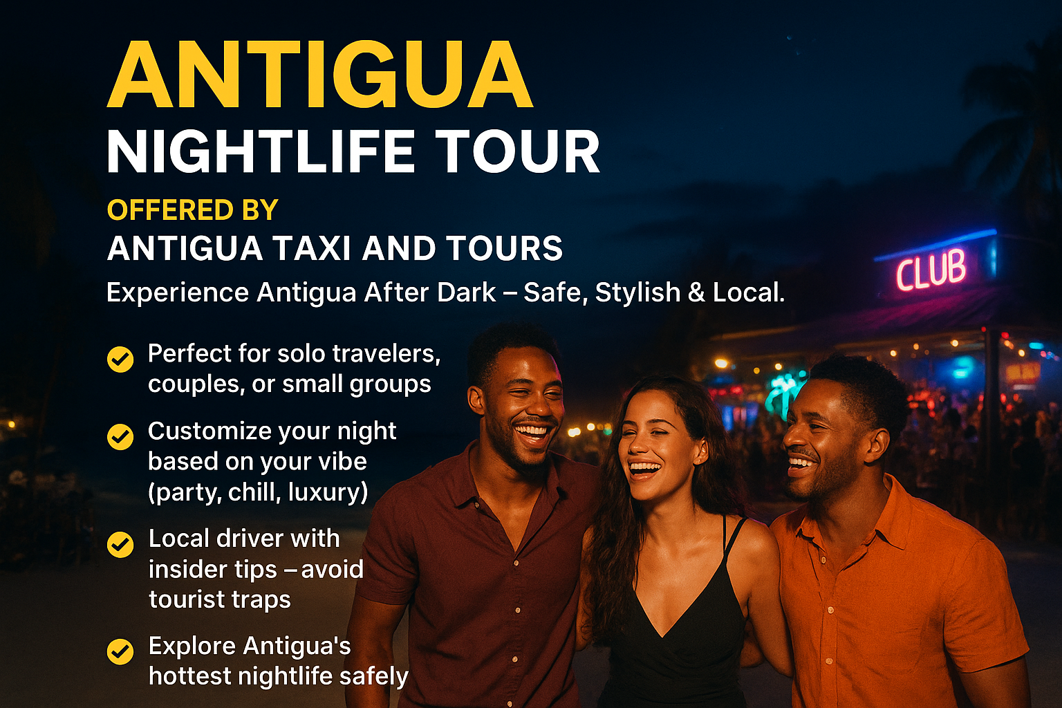 Whether you’re looking for live reggae, beachfront cocktails, or club vibes, Antigua Taxi and Tours will take you there in comfort and safety.